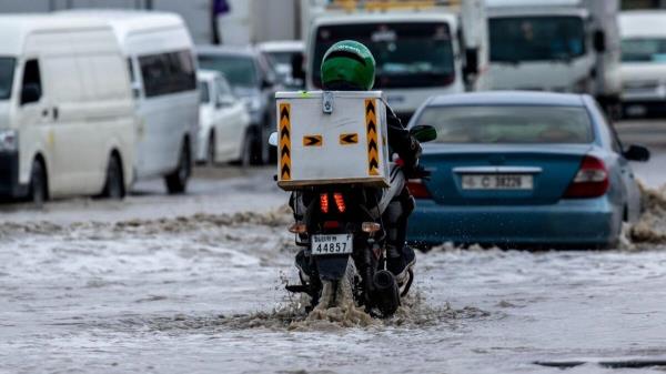 送货员M.M.是周四为数不多的在路上接订单的人之一,尽管他的公司给了他一个选择,如果他觉得不安全,他可以不工作。恶劣的天气导致阿联酋各地的几个快递应用程序要么关闭订单,要么警告可能出现长时间的延误。