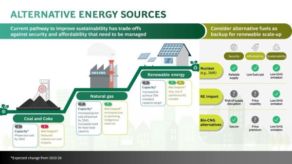 除了可再生能源,还有三种可行的替代能源:核能、可再生能源进口和生物压缩天然气(bio - cng)。