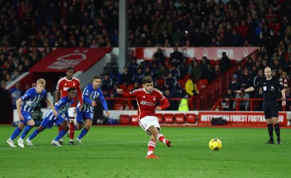 当杰克·欣舍伍德犯规卡勒姆·哈德森-奥多伊时,在VAR检查后,森林队获得了一个点球,这给了他们一线生机。