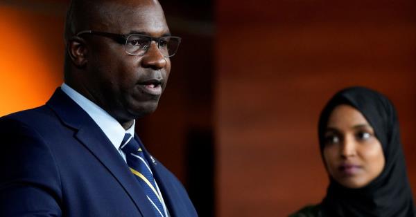 A major pro-Israel group is hoping to unseat Reps. Jamaal Bowman (D-N.Y.), left, and Ilhan Omar (D-Minn.). Threats to incumbents are prom<em></em>pting Justice Democrats to retrench.