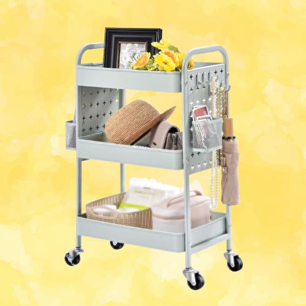 最终的选择。它带有钉板和挂钩,这样你就可以优化你的空间,并得到一大笔钱。它有可锁的轮子和网状架子,有四种颜色,在亚马逊上售价53.99美元以上