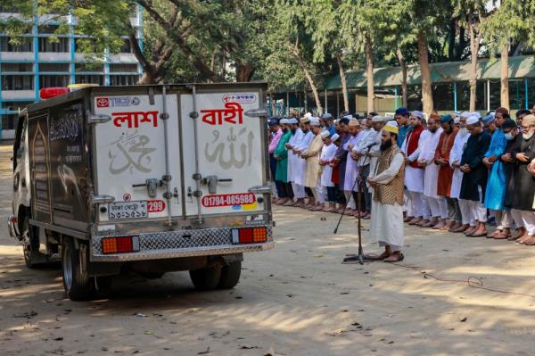 达卡:周五,痛苦的家属在孟加拉国最大医院的停尸房外守夜,等待亲人的尸体被确认身份,他们说这场火灾本不应该发生。