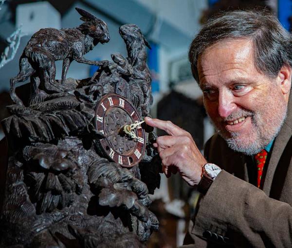 例如,在黑森林的一个集市上,他看中了一个他追逐了两年的、非常想要的19世纪60年代手工制作的钟,并迅速抢购了下来。