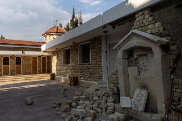 2023年2月24日,土耳其Samandag发生致命地震后,土耳其最后一个亚美尼亚人村庄Vakifli受损的教堂。路透