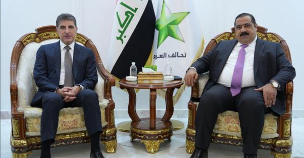 伊拉克库尔德斯坦地区主席巴尔扎尼(Nechirvan Barzani)和阿兹姆联盟(Azm Alliance)领导人萨迈拉伊(Muthanna al-Samarrai)周一在埃尔比勒会晤,讨论库尔德斯坦地区的宪法权利。