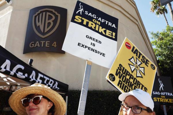 编剧的纠纠线已经暂停,但他们被鼓励与演员团结一致,周二许多人都在纠纠线上,包括《广告狂人》的编剧马修·韦纳,他和朋友、《急诊室的故事》的演员诺亚·威尔一起纠纠线,就像他在罢工期间一样。韦纳说:“如果美国演员工会没有退出,我们就永远不会有现在的影响力。”“他们这么做非常勇敢。”