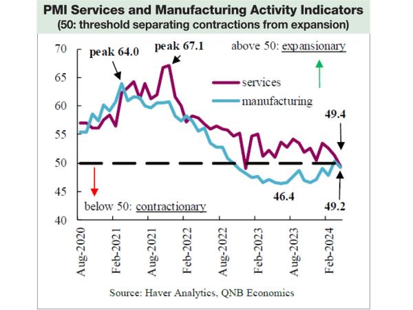 自那以来,该指标以温和的步伐放缓,在50点上方或附近波动,这是表明经济扩张的标志。服务业的表现为经济提供了支持,因为它占整体经济活动的70%以上。