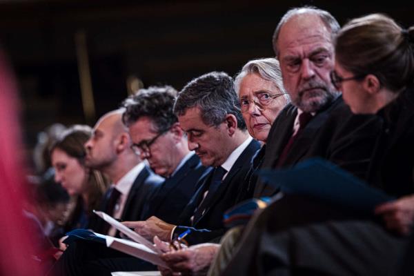 8日(星期三),在国民大会的会议室里,布劳恩-皮维特(Ya?l)尽情地宣泄着自己的情绪。大会主席前来迎接在加沙被哈马斯劫持的法国人质的三个家庭。她强调,在她看来,10月7日在以色列发生的事情是“反人类罪”。