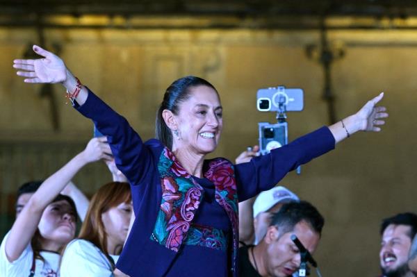 墨西哥城:成千上万唱着歌、挥舞着旗帜的人们聚集在市中心的一个广场上,庆祝克劳迪娅·谢恩鲍姆(Claudia Sheinbaum)成为墨西哥第一位女总统的突破性胜利。