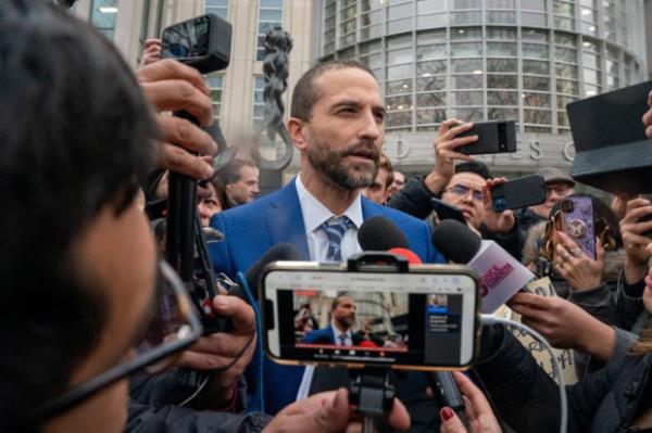 2023年2月21日,美国纽约市,辩护律师塞萨尔·德·卡斯特罗在离开布鲁克林联邦法院时发表声明,陪审团裁定他的客户,墨西哥前安全部长吉纳罗·加西亚·卢纳犯有腐败和贩毒指控。路透社/David Dee Delgado