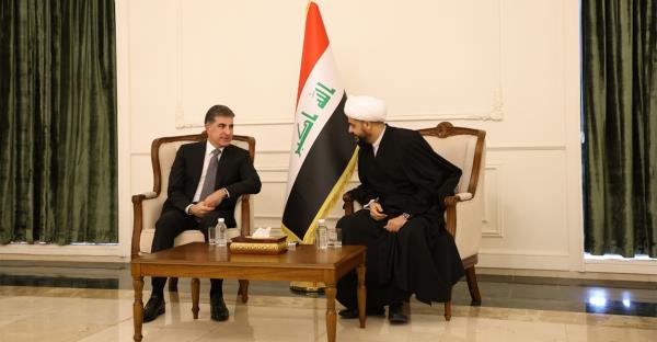 伊拉克库尔德斯坦地区主席巴尔扎尼(Nechirvan Barzani) 16日会见了伊拉克什叶派领袖“伊拉克自由联盟”(Asa’ib Ahl al-Haq)领导人卡扎利(Qais al-Khazali),讨论了伊拉克的政治和安全局势。