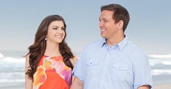 这张来自参议院竞选活动的照片是在海滩上拍摄的,上面引用了德桑蒂斯的妻子凯西的话,她称他是“一个正直和荣誉的人”。