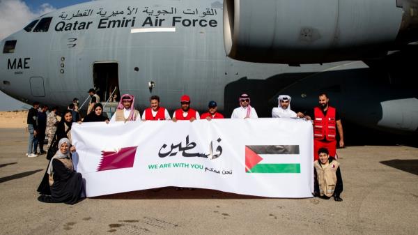这些飞机载有62吨援助物资,包括基本食品和住房设备,这些物资是由卡塔尔发展基金(QFFD)和卡塔尔红新月会(QRCS)捐赠的,随后将运往加沙。