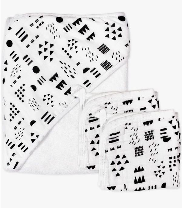 nestBaby有机棉连帽毛巾和毛巾套装(折扣价37%)由有机棉毛巾布面料制成,这套包括一条连帽毛巾和两条配套的毛巾。这正是你需要一个舒适和超甜蜜的洗澡时间。这套套装有七种不同的图案和颜色可供选择。