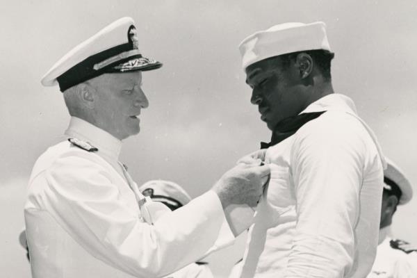 当第一枚炸弹落下时,米勒尽管地位低下,却毫不犹豫地采取了行动。他协助将受伤的水手转移到安全的地方,其中包括受了致命伤的船长,然后接管了一门无人高射炮,向攻击的飞机开火。尽管他没有接受过使用这种武器的训练,但他至少击落了两架。“这并不难,”他后来说,因为他看到了他的船友操作枪。“我只是扣了扳机,她表现得很好。”