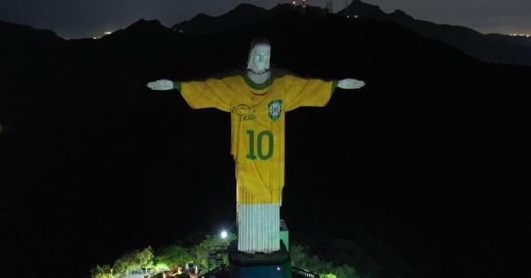 里约热内卢的救世主基督雕像穿上了一件背后印有贝利名字的巴西球衣,以纪念这位足坛偶像去世一周年。